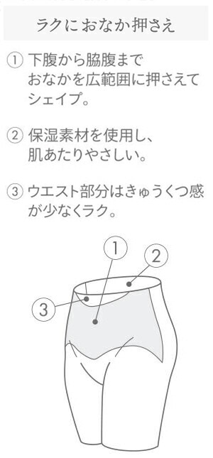 ・下腹から脇腹、くびれ部分までおなか全体を広範囲にカバーでき、たるみやすいヒップ下を揺れにくくする裏打ち構造